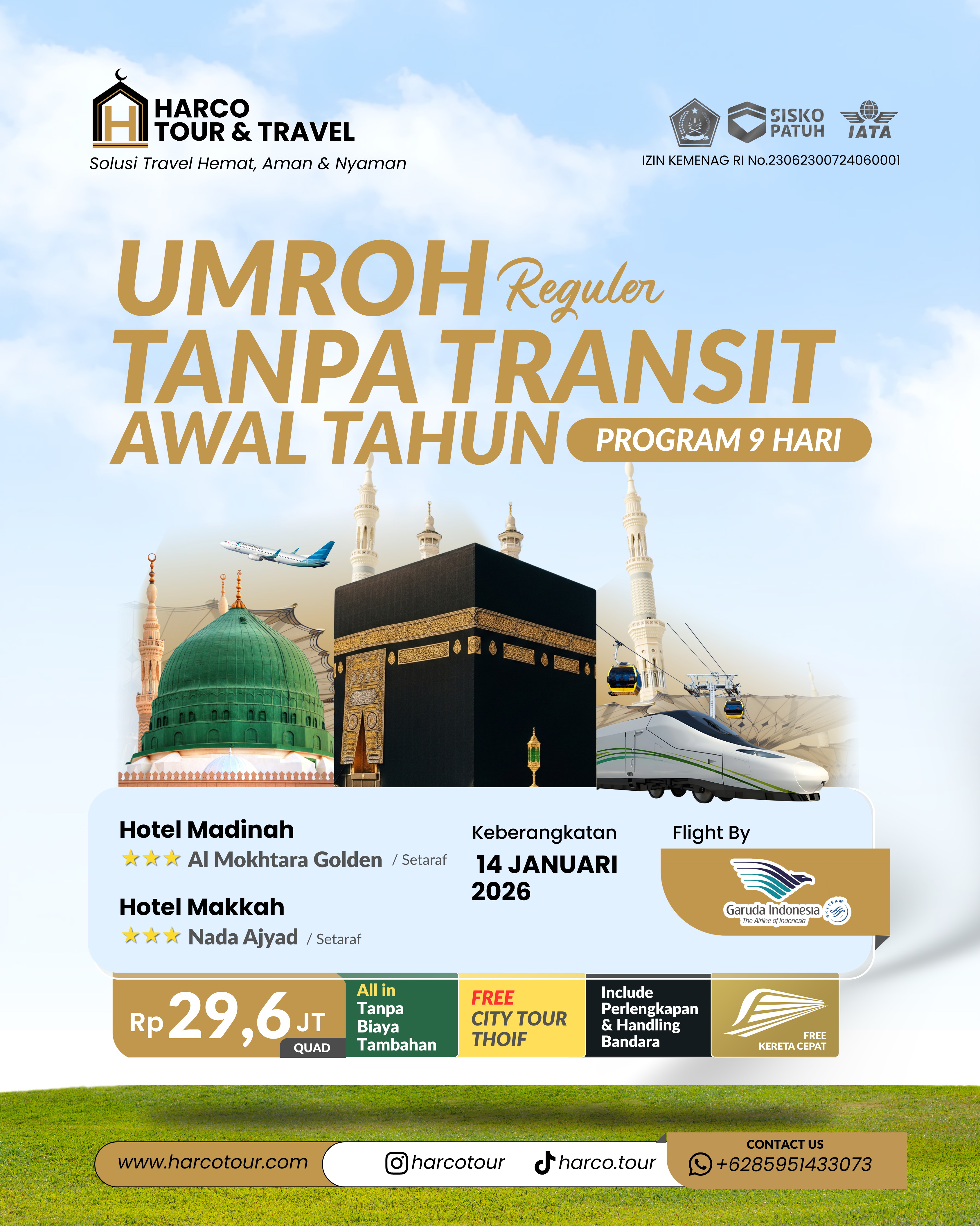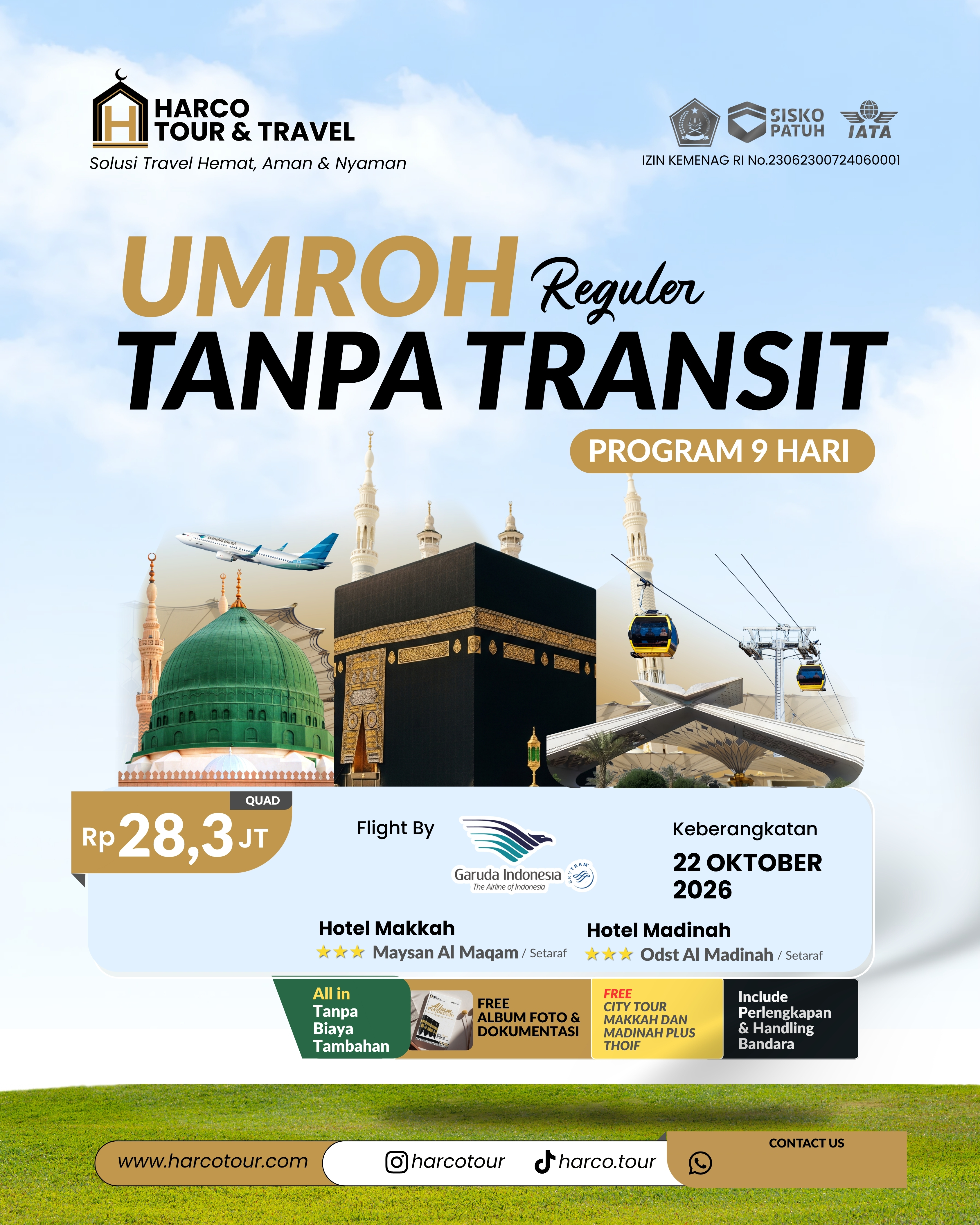 PT Harco Tour dan Travel adalah sebuah perusahaan travel yang berkomitmen untuk memberi solusi agar para pelanggan dapat melakukan perjalanan secara hemat, aman, dan nyaman. Dengan pengetahuan, keramahan, dan dedikasi, tim kami bertekad untuk memberikan pelayanan terbaik untuk semua jenis travel, baik travel untuk melaksanakan ibadah umroh/haji, travel untuk liburan, dan travel untuk bisnis.