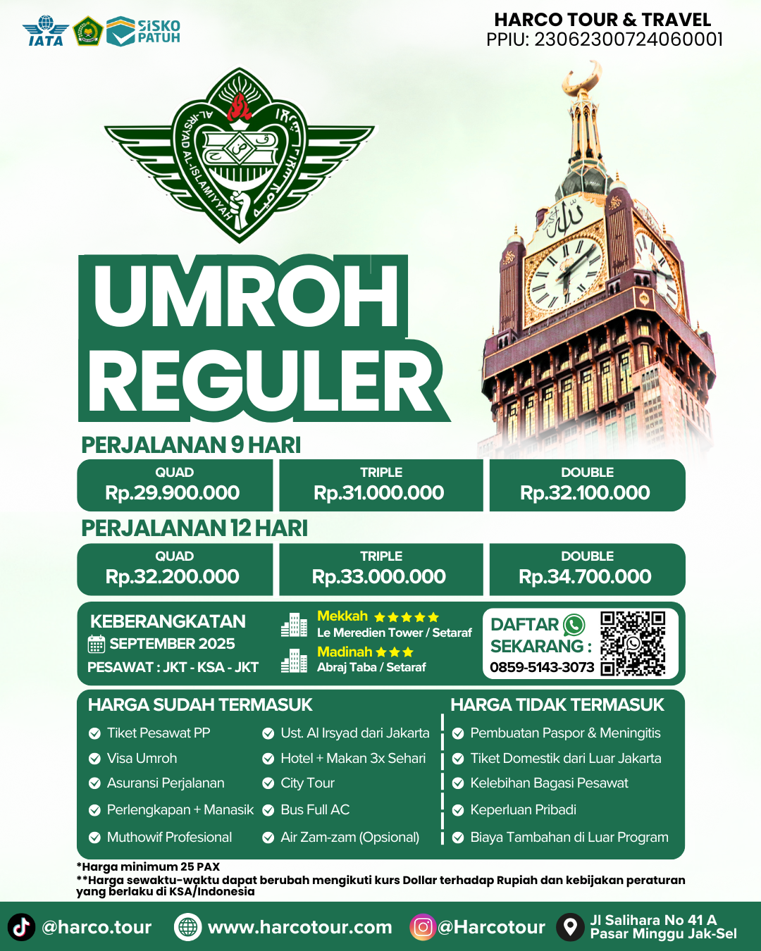 Umroh Reguler Al Irsyad 2025, 9 Hari | 35 Pax